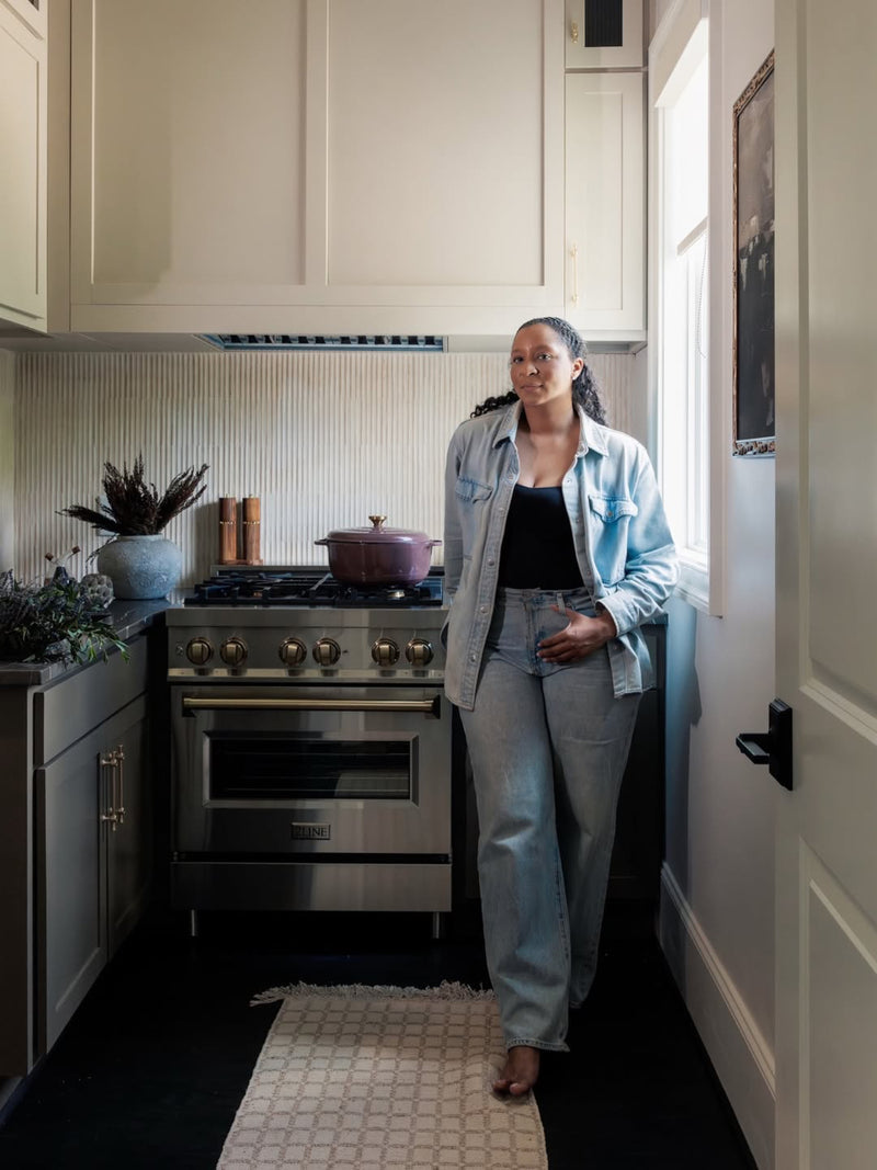 Nestled in natural light and grounded in warmth,Earthbound reflects Rathell Designs’ signature approach to biophilic, modern living — where every detail honors texture, tone, and intentional simplicity. This intimate kitchen and pantry were designed to feel calm yet elevated, balancing the tactile beauty of natural materials with the functionality of a working culinary space. Hand-selected materials, from the reeded wall tile to the honed marble counters — invite quiet luxury and subtle movement, while warm brass hardware and fixtures lend timeless sophistication. Each vignette captures the art of everyday living: olive oil beside fresh herbs, textured bread on a stone counter, sunlight softening the cabinetry’s muted taupe-gray finish. The result is a serene, layered environment that feels both deeply personal and effortlessly refined — a true reflection ofliving beautifully, simply, and grounded in nature.